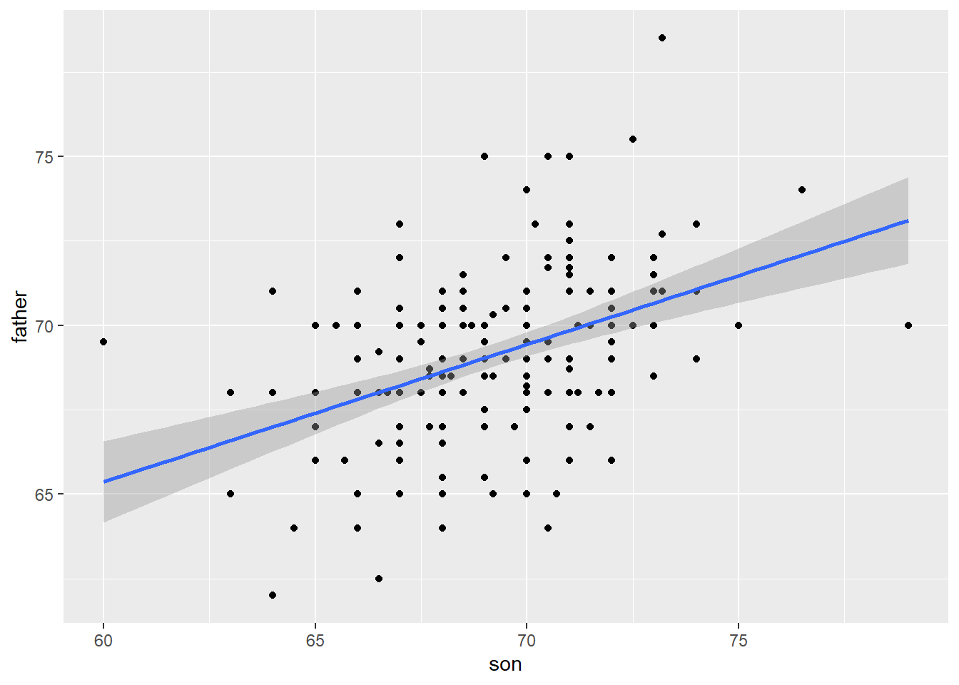 For plotting, we can also use the argument method = "lm" which stands for linear model, the title of an upcoming section. So we can simplify the code above like this: