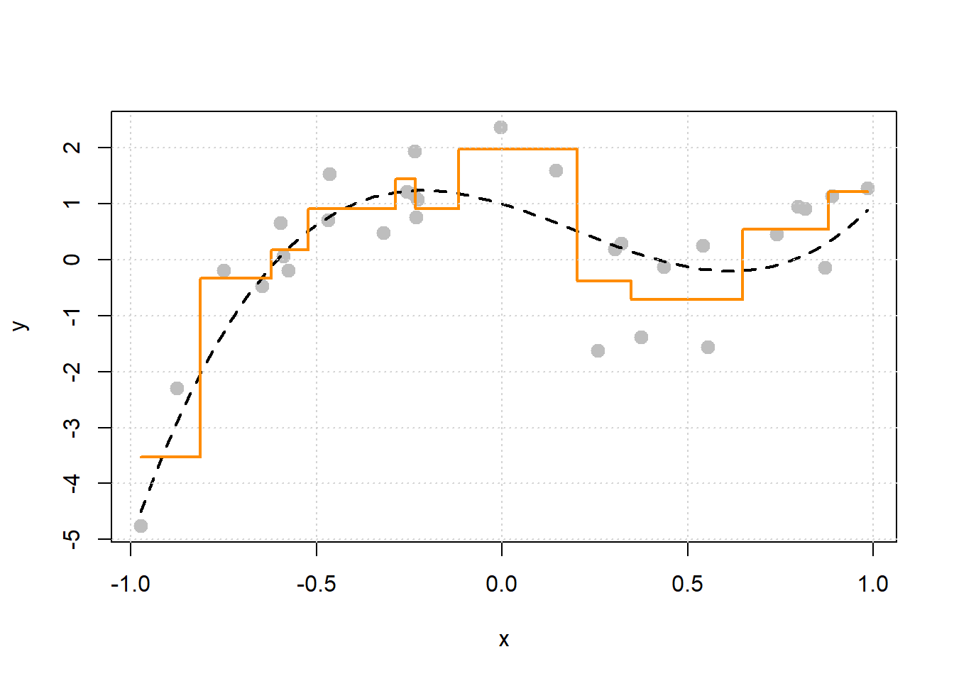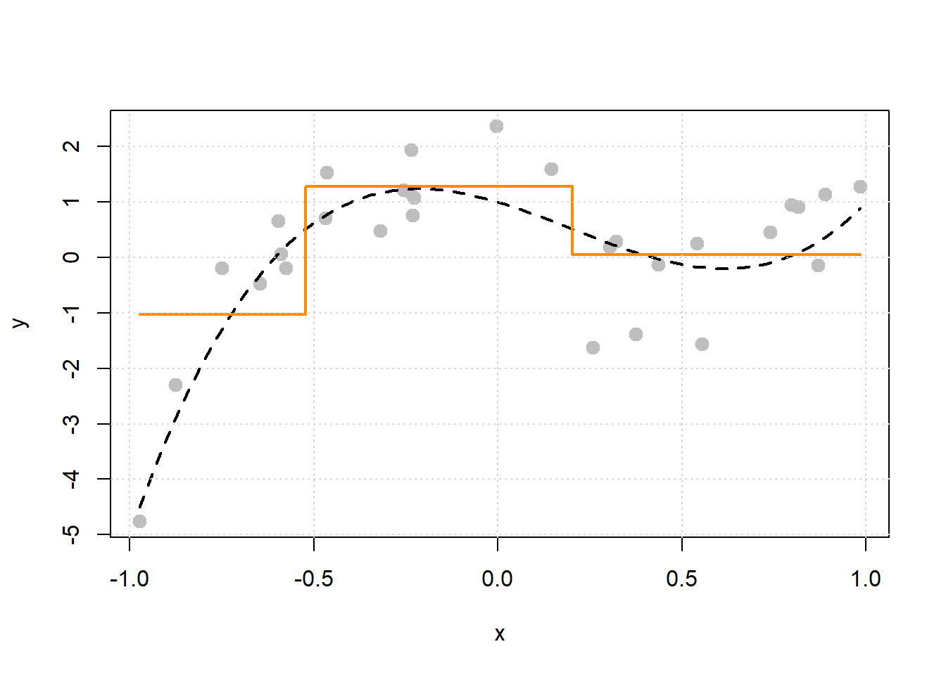\[ \mu(x) = \mathbb{E}[Y \mid \boldsymbol{X} = \boldsymbol{x}] = 1 - 2x - 3x ^ 2 + 5x ^ 3 \]