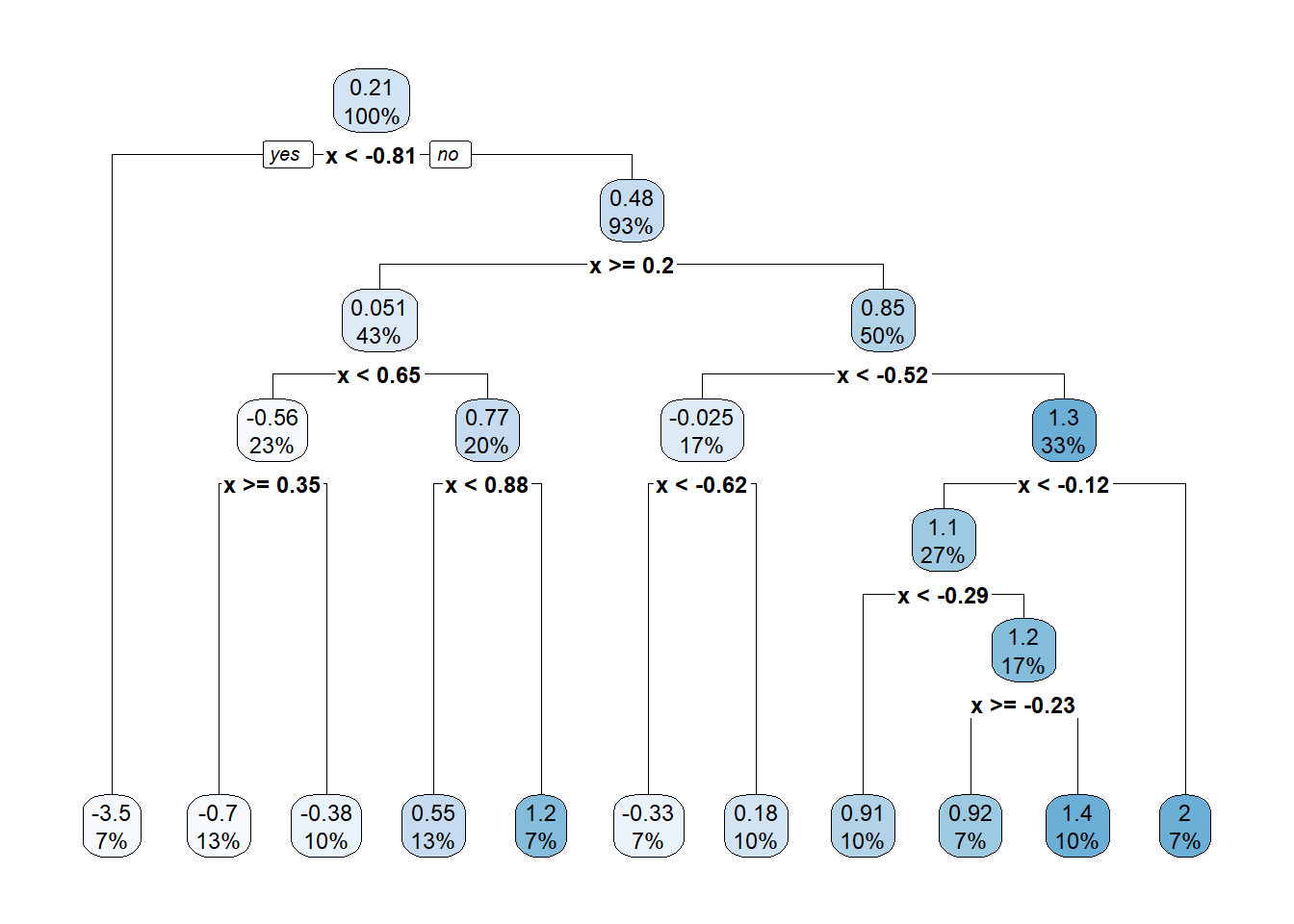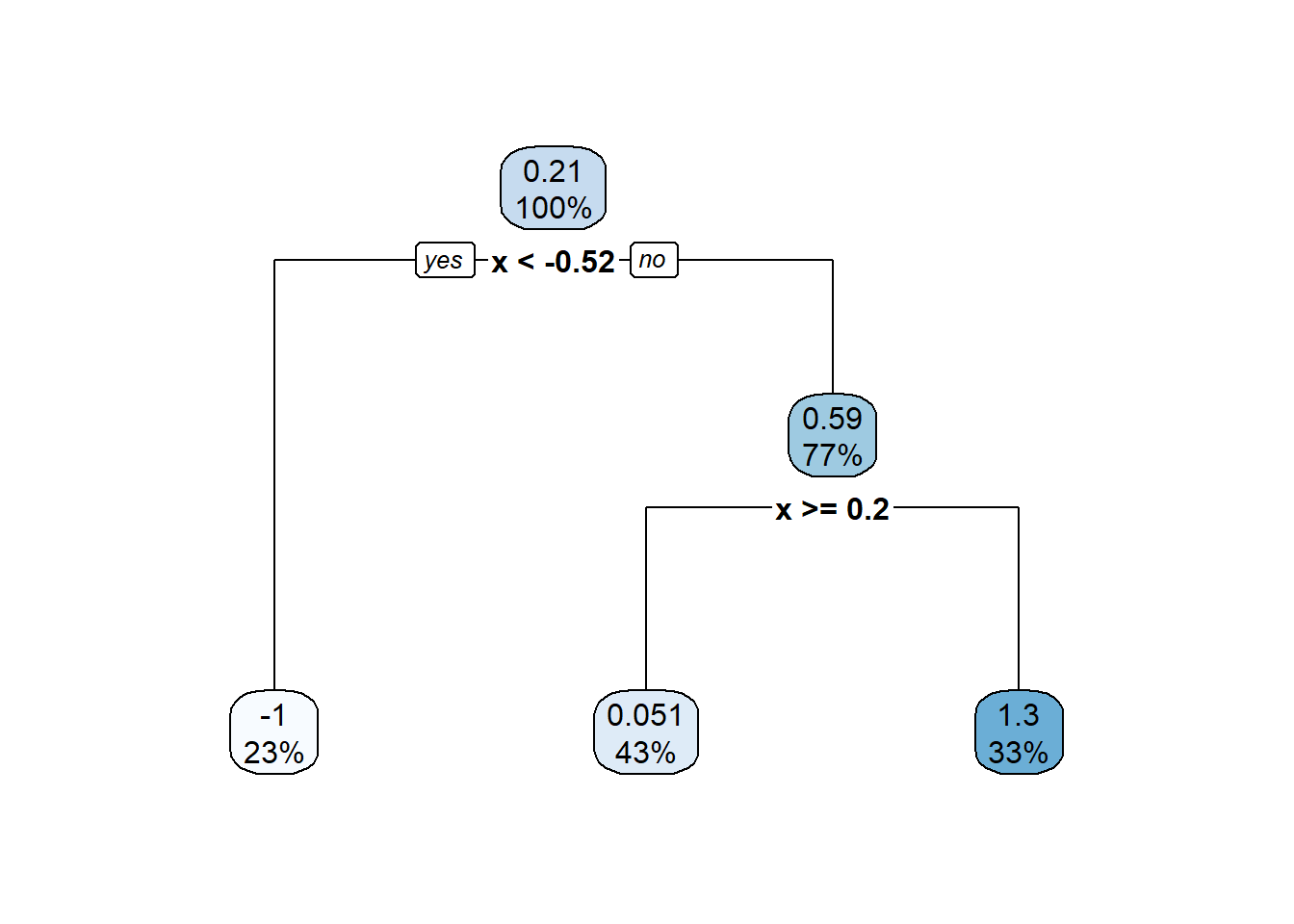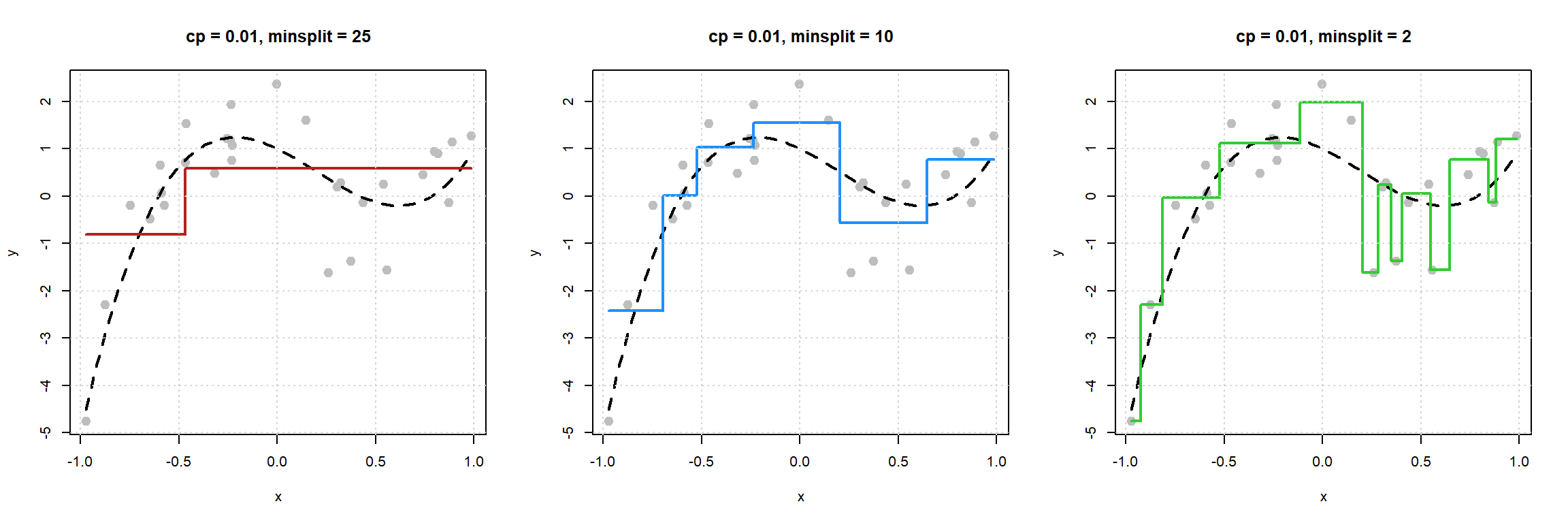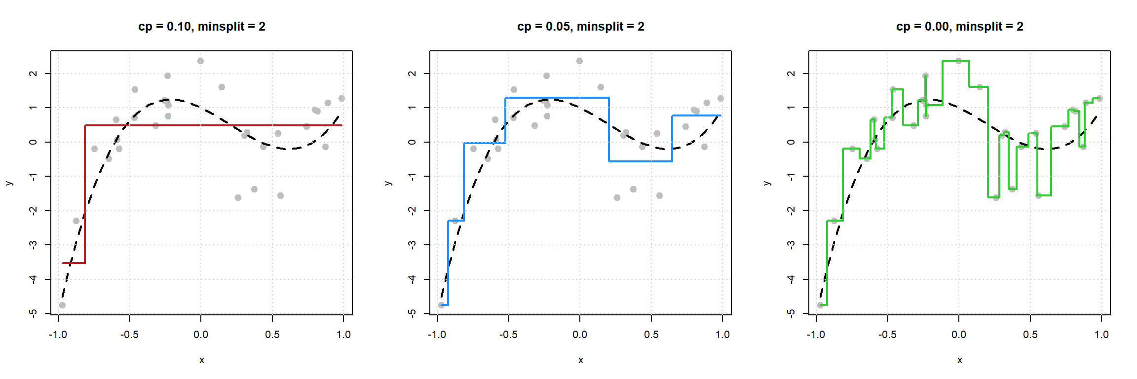 rpart()function from therpartpackage. - How “making predictions” can be thought of as estimating the regression function, that is, the conditional mean of the response given values of the features.