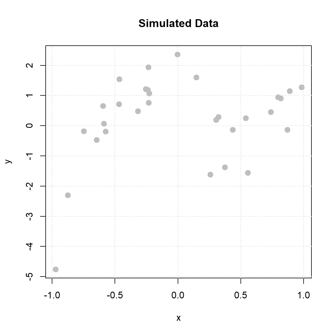 lm(y ~ x + I(x ^ 2) + I(x ^ 3), data = sim_slr_data)