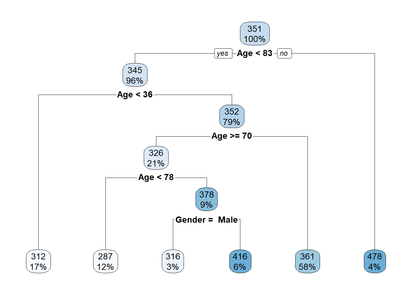 Age < 83Age > 36Age > 70Age > 78Gender = Male