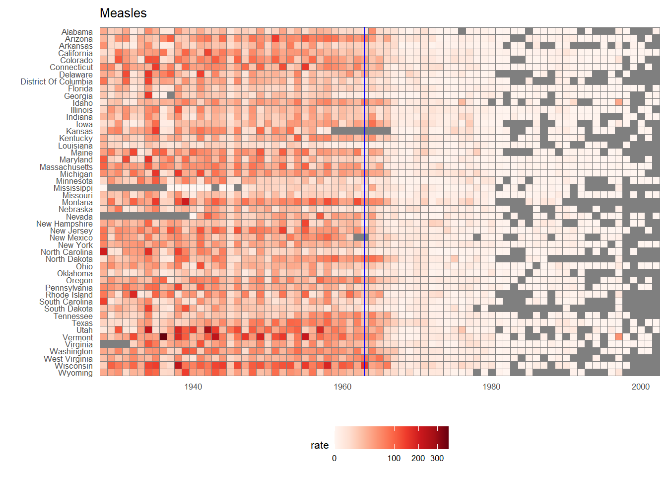 There’s something wrong (or, at the very least, unhelpful) about the finished measles plot above. Can anyone guess what it is?