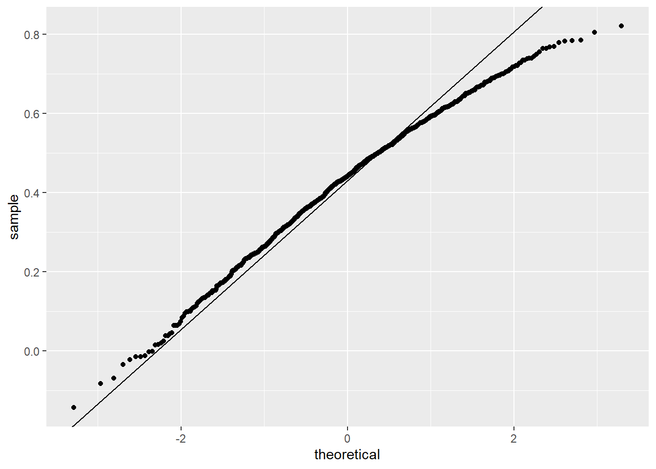 ggplot(aes(sample=R), data = data.frame(R)) +