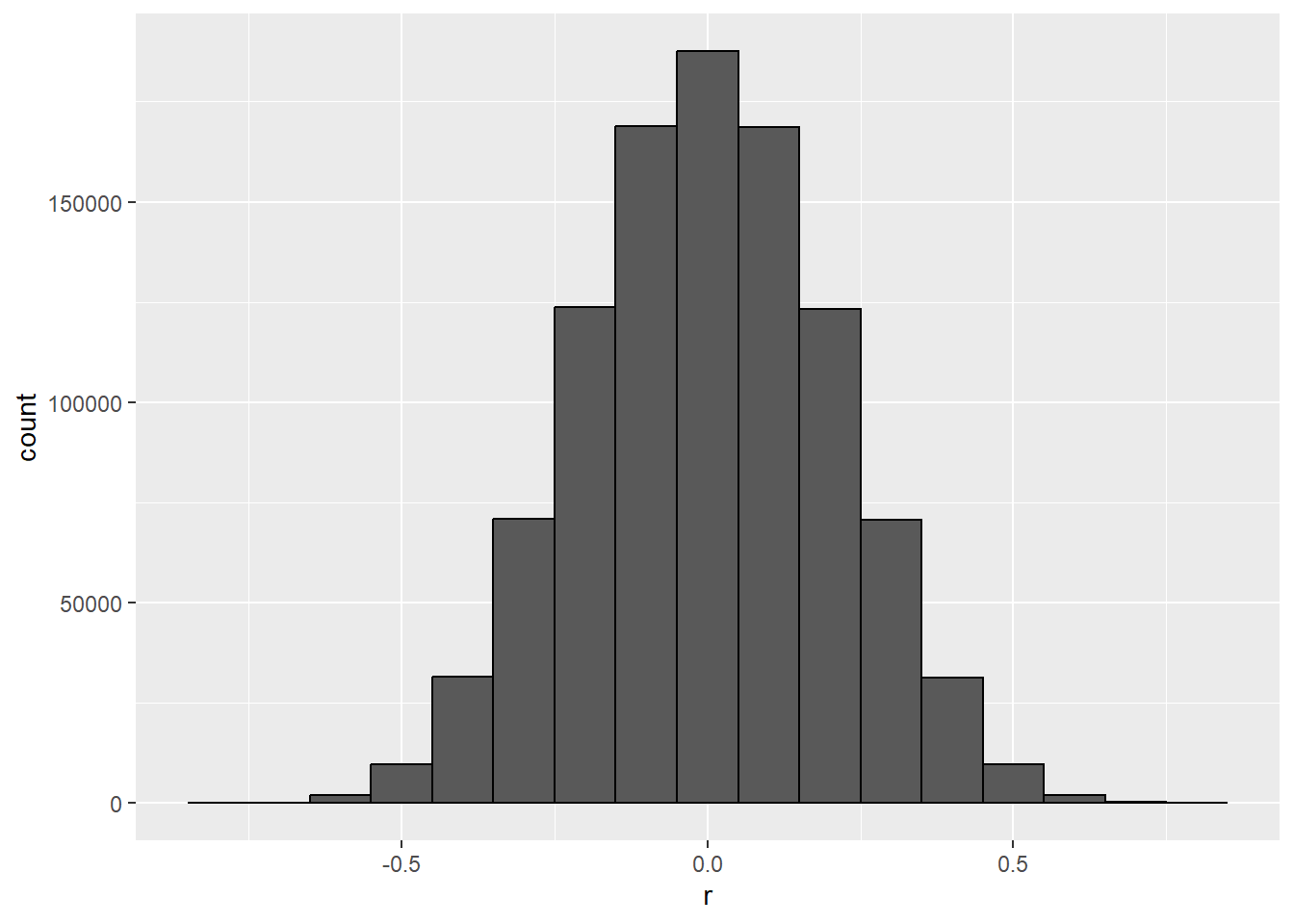 Remember that the correlation summary is a random variable. Here is the distribution generated by the Monte Carlo simulation: